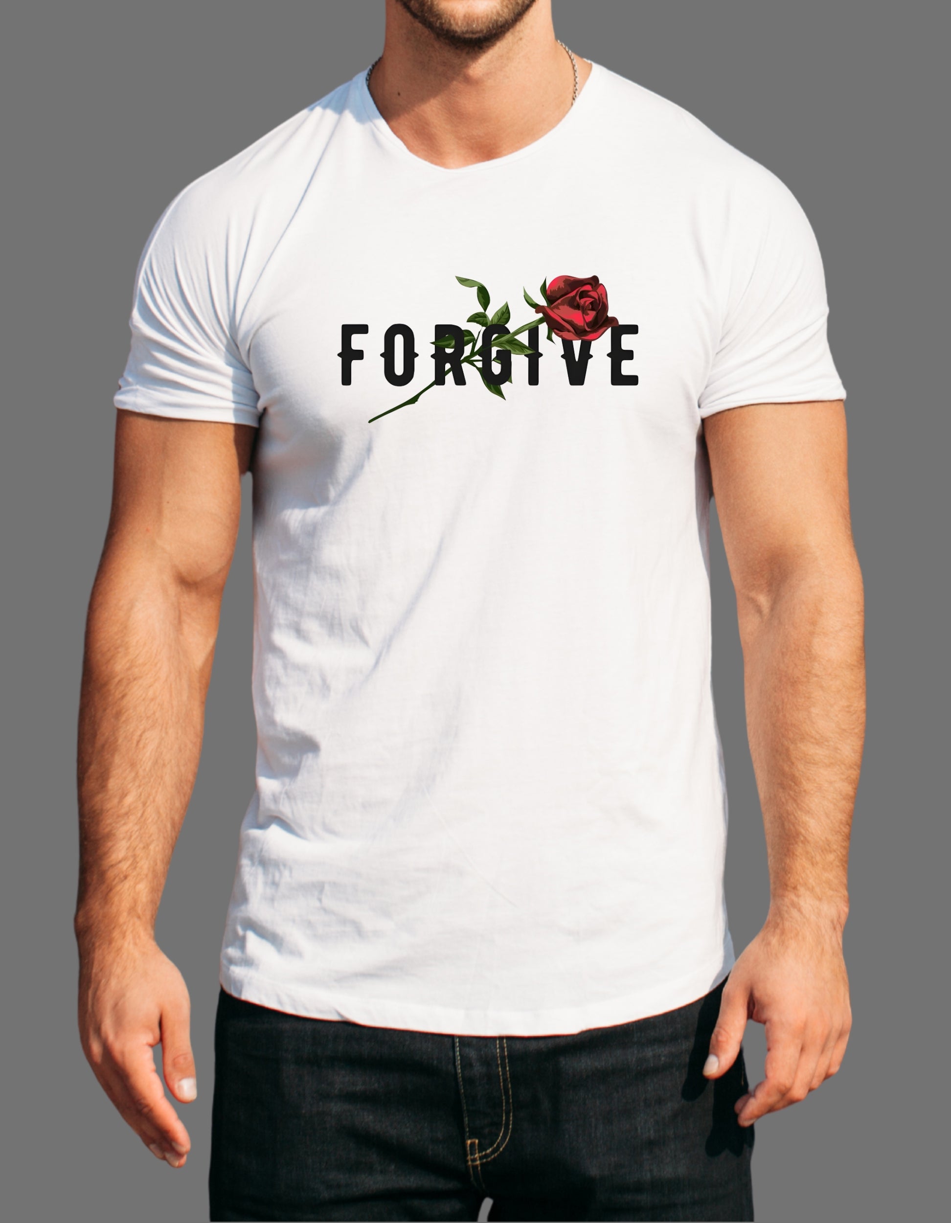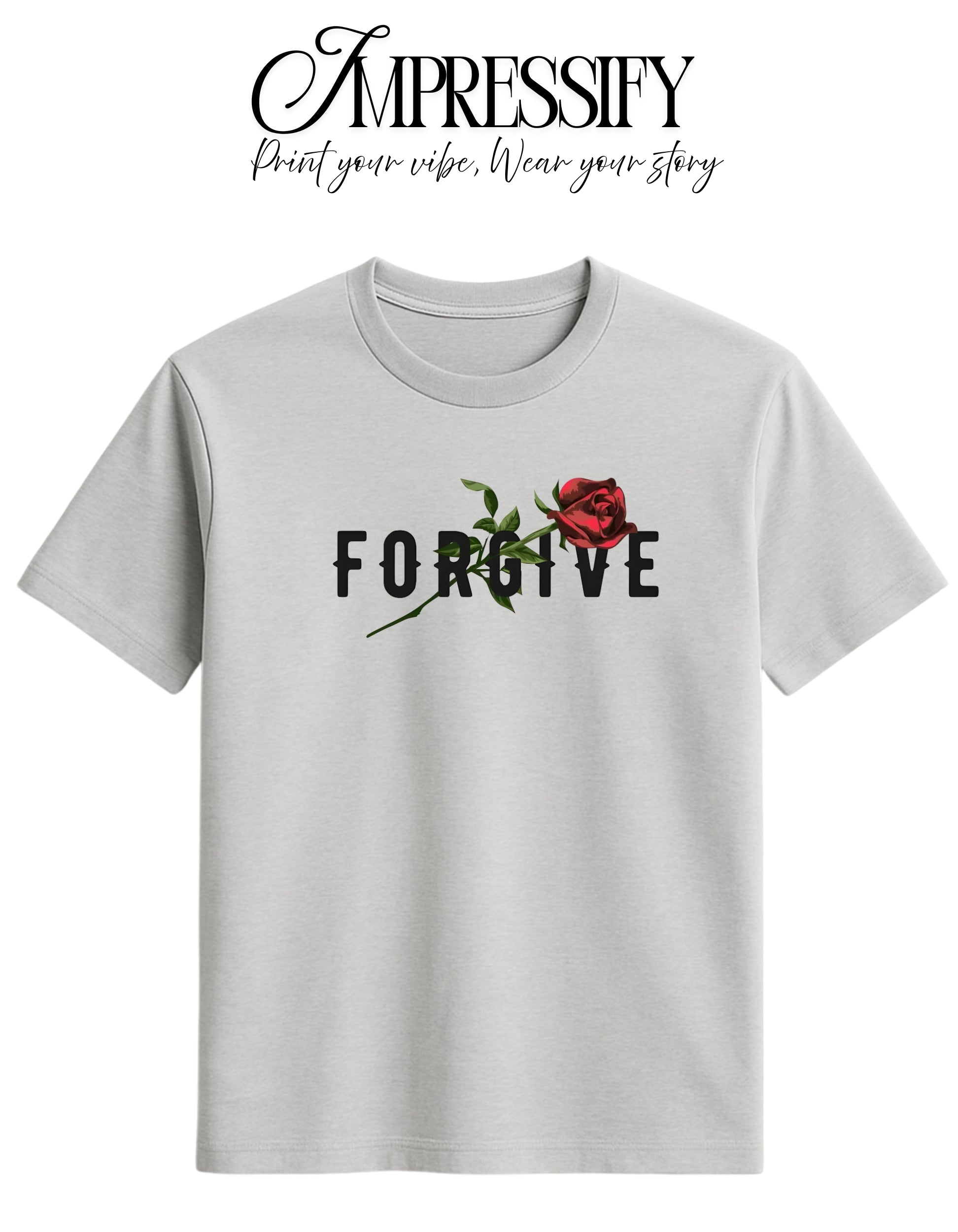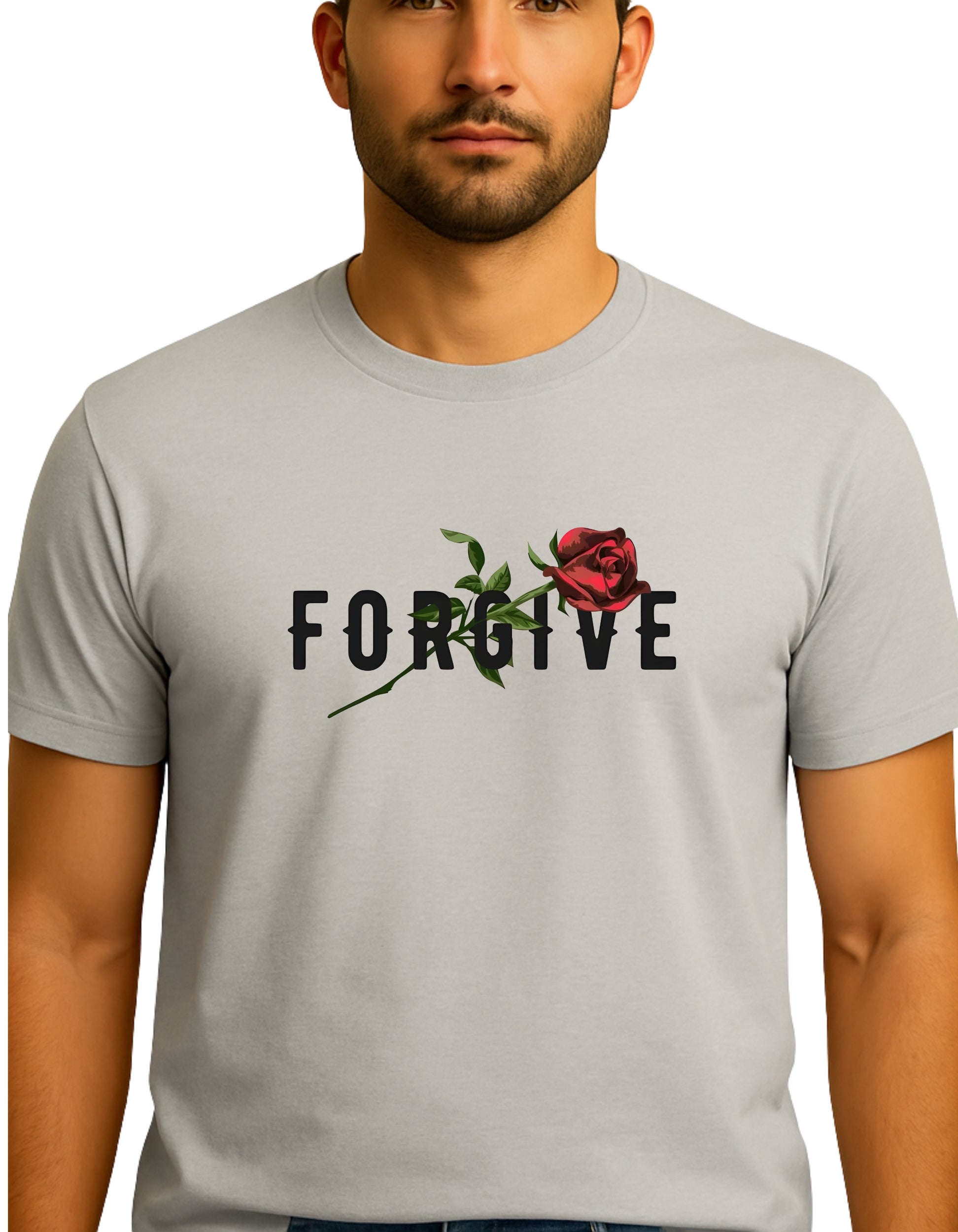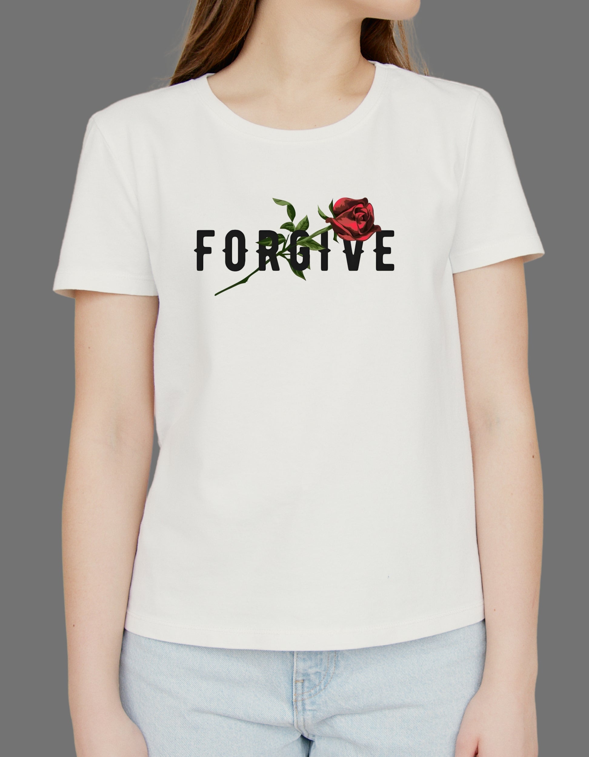 Express elegance, peace, and positivity with this FORGIVE Rose DTF Printed Unisex T-Shirt.